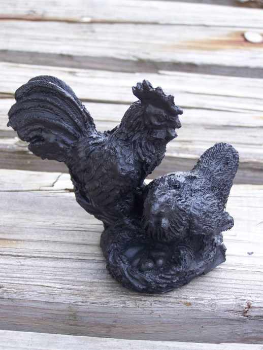 This unique handcrafted piece is a true work of art! Created by skilled artisans from Kentucky, it features a lovely rooster, hen, and chicks made from coal. The intricate details and beautiful design make this a perfect addition to any home decor or table setting. Crafted with care and precision, this piece is a one-of-a-kind treasure that will be sure to impress. Perfect for country decor enthusiasts or as a gift for anyone who loves handcrafted art, this rooster, hen, and chicks sculpture is a must-have for your collection. 5" X 3 1/2"