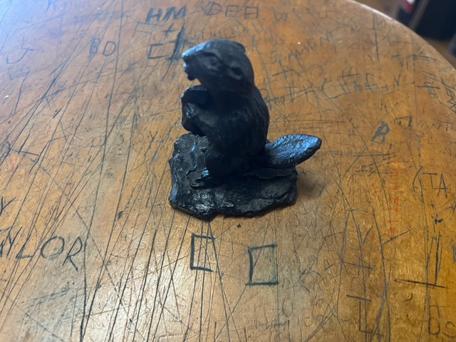 This small beaver figurine is a true work of art, handcrafted from high-quality coal by skilled artisans from Kentucky. The beautiful black color and rustic style make it a perfect addition to any home décor, whether you're looking to decorate your living room, bedroom, or garden. The attention to detail and craftsmanship are evident in every aspect of this figurine, from the delicate features to the carefully crafted texture. This figurine is perfect for collectors of unique and beautiful sculptures, or anyone looking to add a touch of charm to their home. Made from durable and long-lasting coal, it is sure to remain a beloved piece for years to come. Whether displayed on its own or as part of a larger collection, this small beaver figurine is a true treasure. 2 1/4" X 2 3/4"